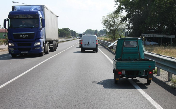 All kinds of truck sizes & speeds, the small one is doing about 15mph