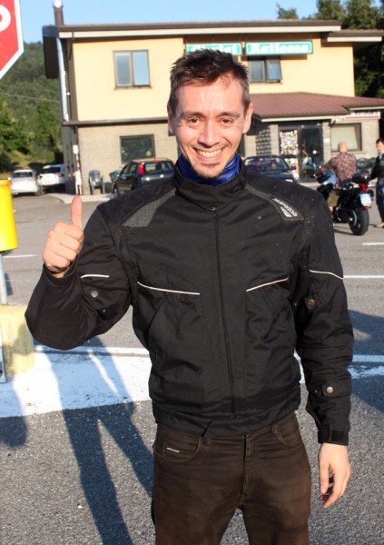 At the summit of the Futa we meet another happy biker who soon becomes our photographer