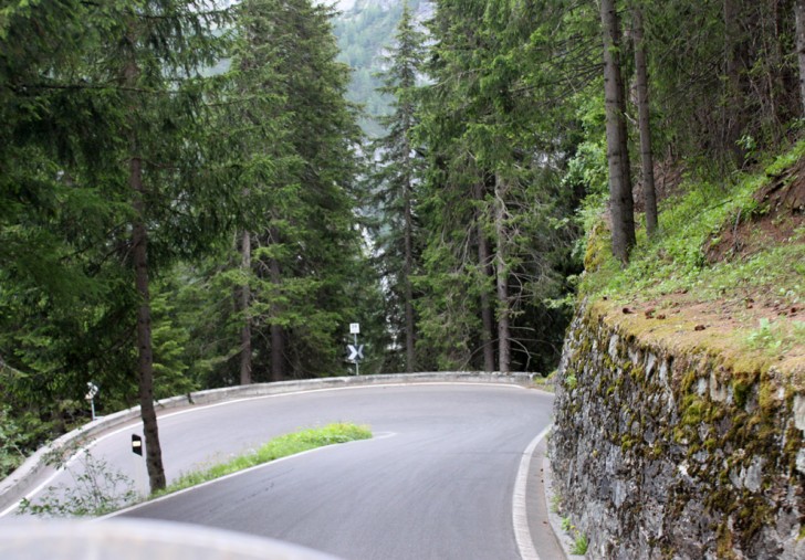 Cutting through the trees at the bottom of the pass
