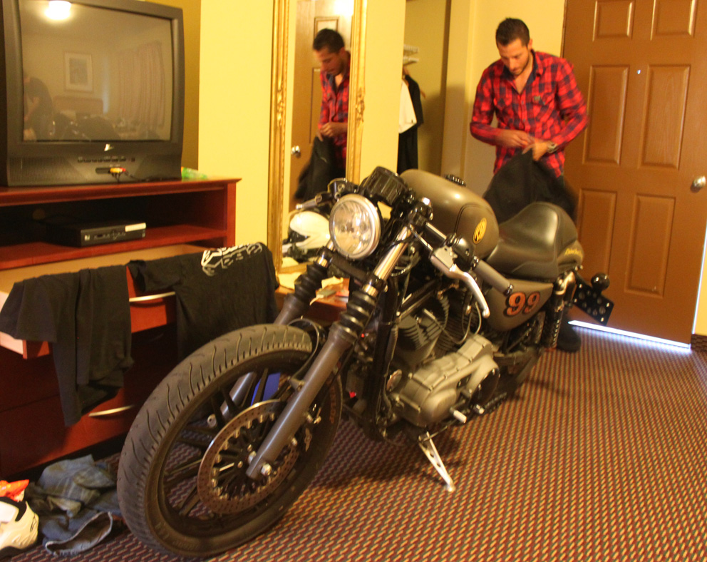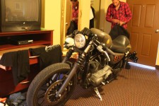 On Sunday evening I had the opportunity to swap my lopsided tent for a motel room floor so I took my mate Adam’s (Motorcycle-USA) offer of some creature comforts and rode back on Monday morning. There was no way the RSD Cafe Racer could stay outside so that also came with me and had a night in doors, good job it was a ground floor room and I just couldn’t resist firing it up inside to wake Adam and his mate Brian as they slept in their beds as I left early the next morning.